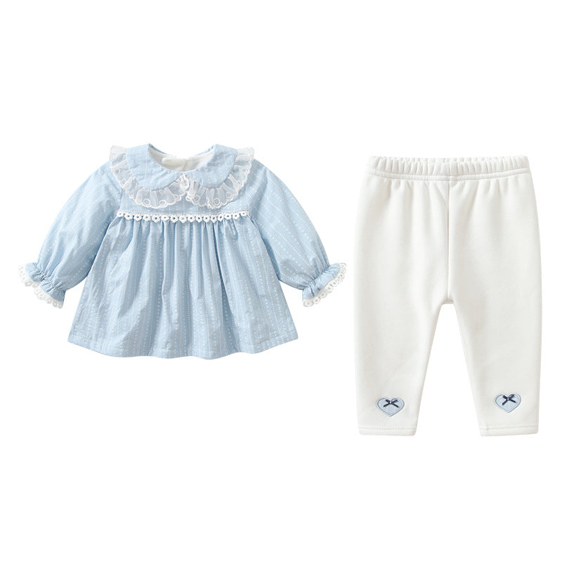 Introducing our charming Baby Girl Solid Color Mesh Patchwork Design Shirt Combo Pants Sets, designed to bring elegant flair and style to any outfit. Crafted from the finest materials and featuring a delicate, intricate mesh patchwork design, this set offers timeless beauty and exquisite comfort for your little one. Perfect for special occasions and everyday wear alike, these pants sets are sure to be a treasured addition to your little one's wardrobe.