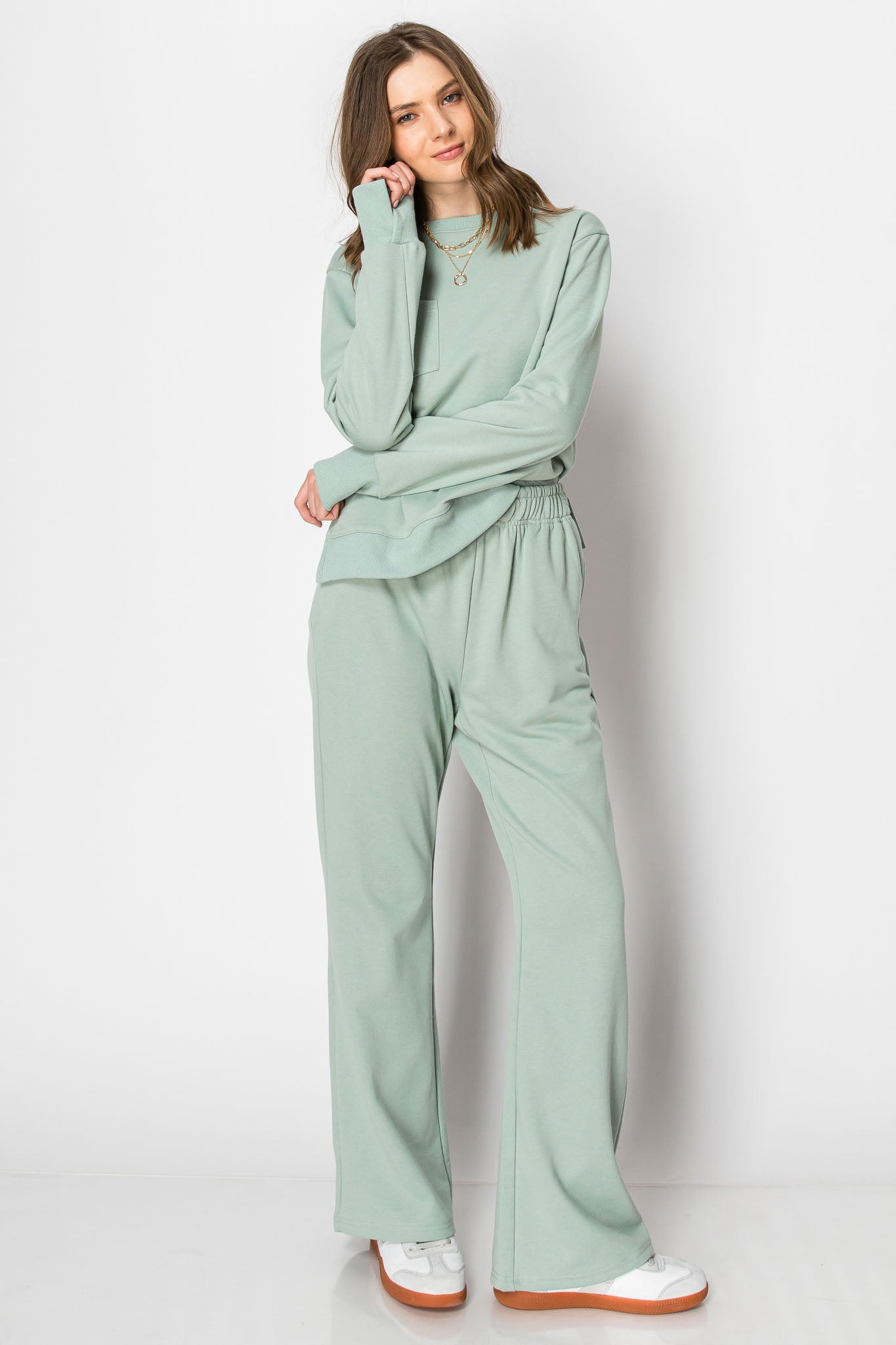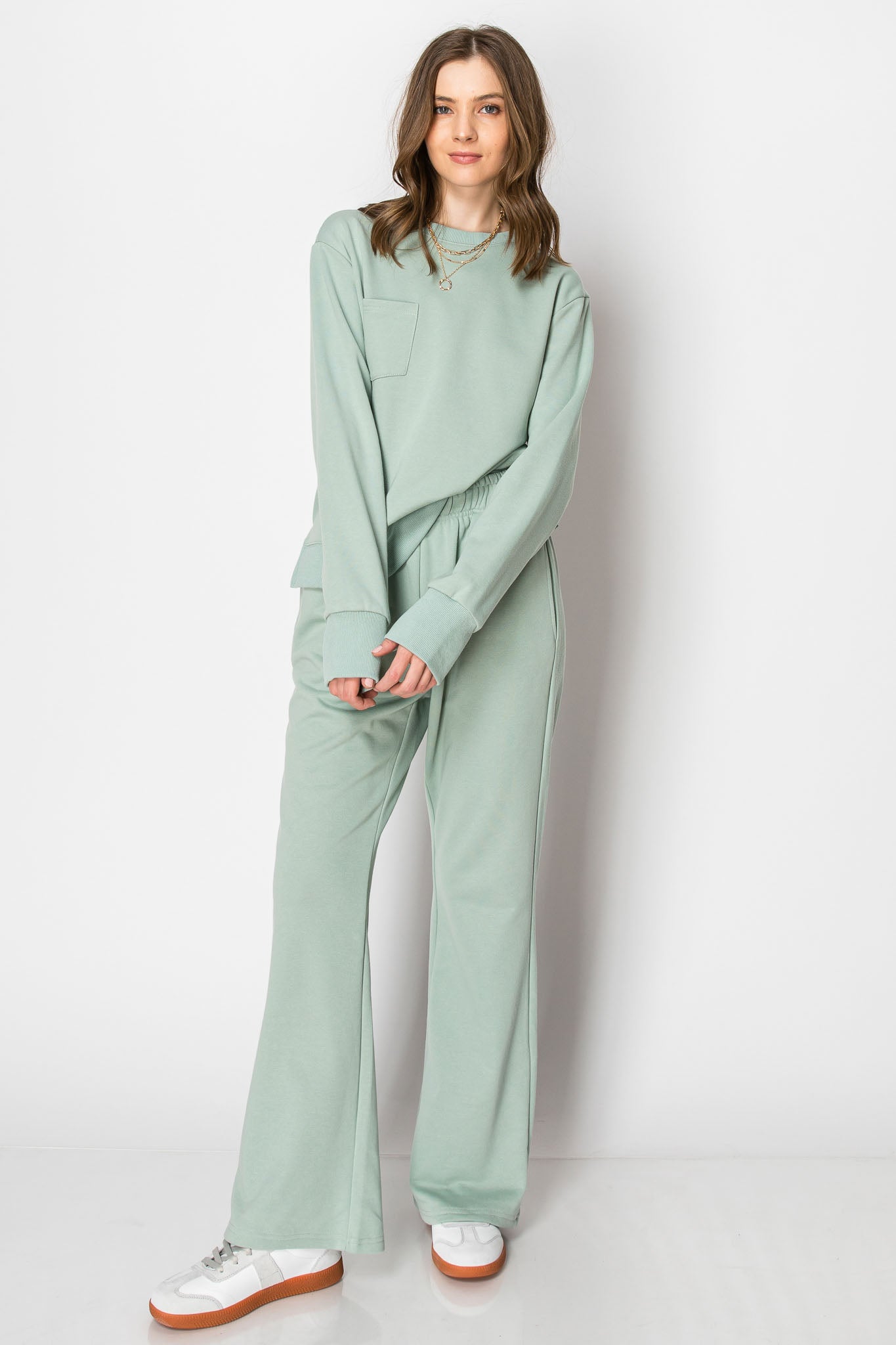 Long Sleeve French Terry LOUNGE SET, Crew Neck Wide Leg Comfy Fall Casual Essential, Great Basic for Layering a Cardigan or Sweater for cold Weather!