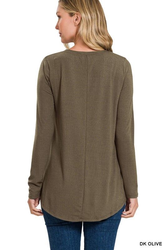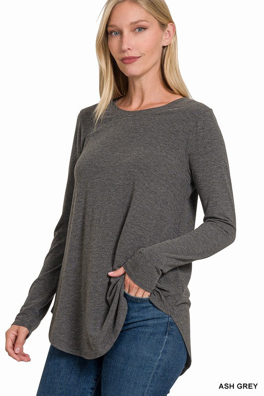 Long Sleeve Round Neck & Round Hem Top