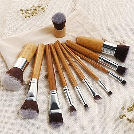 - 10 pcs bamboo handle makeup brushes and 1 cloth bag.