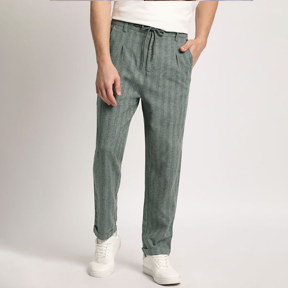 Men's Vertical Striped Tapered Fit Casual Trouser