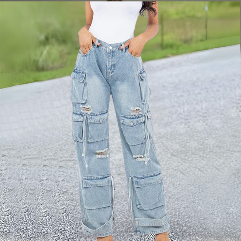 - 1x Women's Cargo Style Denim Jeans Pants.